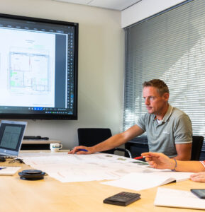 “Ik werk nu ruim een jaar binnen een stabiele organisatie, maar voor mezelf is er veel veranderd. Waar ik in m’n vorige werk als uitvoerder nagenoeg altijd op de bouw liep, zit ik nu veel meer op kantoor. In mijn functie heb je geen vaste weekplanning. Calculatie, acquisitie, werkvoorbereiding en een klein stukje uitvoering wisselen elkaar af. Ik werk nu veel meer aan de voorkant.”